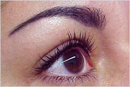 While observing the normal eyebrow, one notices the flat angle of the hair against the skin, the upward direction of growth in the medial part of the brow, and the convergence of hair in the lateral part.