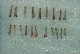 • Follicular unit extraction or FUE harvesting.